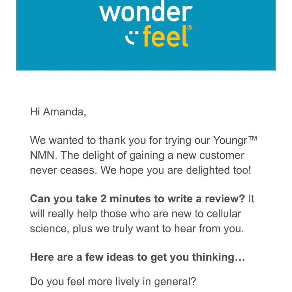 Since I started Youngr NMN I have noticed that I am sleeping better, I am actually dreaming. My skin is improving, the hyper pigmentation is slowly fading. I have Mast Cell Activation Syndrome so at the moment I can only take 1/2 the dose.